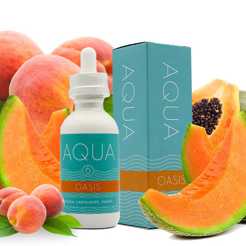 Enjoy the Oasis of flavor brought to you by Aqua Eliquid. The combination of peach, papaya, and cantaloupe can only be described as the most relaxing vape of the summer.