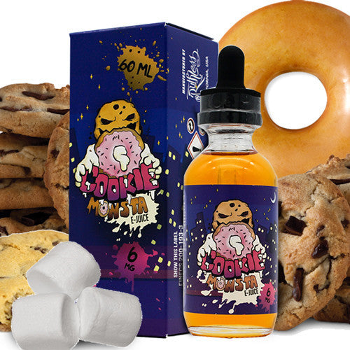 The delicious Cookie Monsta by Ruthless E Juice delivers the taste of fresh chocolate chip cookies and fluffy marshmallows combined with delightful glazed donuts.