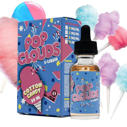 Cotton Candy by Pop Clouds gives you the taste of fluffy, sweet cotton candy without the mess of sticky fingers! Enjoy this light vape for a taste that seems to float right off your taste buds.