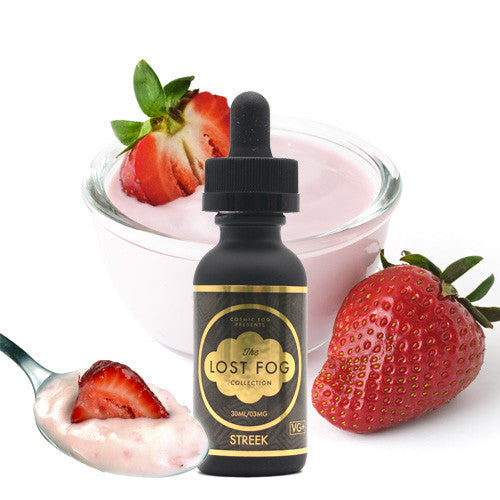 Ladies and gentlemen, I would like to introduce you to your newest all day vape. Lost Fog was created another e juice: Streak! No no no, put that back on! Streak is the combination of flavors such as freshly picked Gaviota strawberries and creamy Greek yogurt.