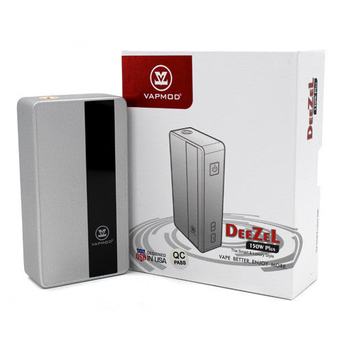 The Vapmod DeeZel Box 150W Plus is a smart and luxurious vapor device. It features a magnetic battery door and batteries may be charged used the charging cable included.