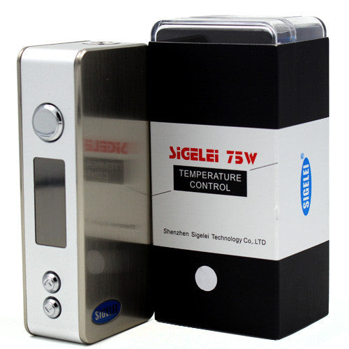 The Sigelei 75W TC Box Mod comes from SigeleiÕs line of various box mods such as Sigelei 50W, Sigelei 100W and Sigelei 150W, but the Sigelei 75W now offers temperature control! This mod can be charged by the use of the USB port or a replaceable 18650 battery. Switching out batteries has been made easier with the addition of a convenient magnetized battery door! With the capability of firing down to 0.05 ohms, the Sigelei 75W is perfect choice for vapers who enjoy the perks of sub ohming all day long!